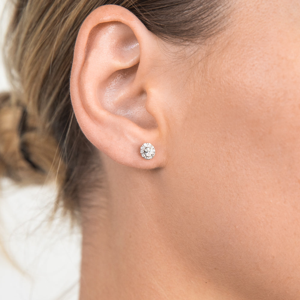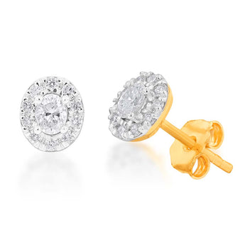 10ct 25pt Diamond Stud Earrings with Oval Centre Diamond and Halo