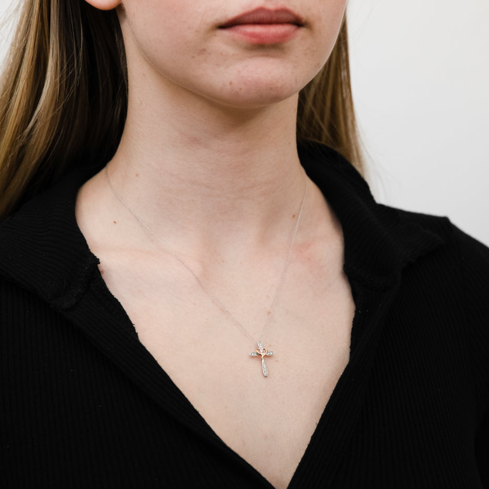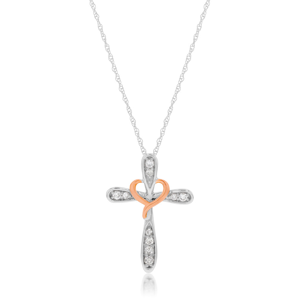 10ct Multi Tone Gold 1/10 Carat Diamond On 46cm Chain