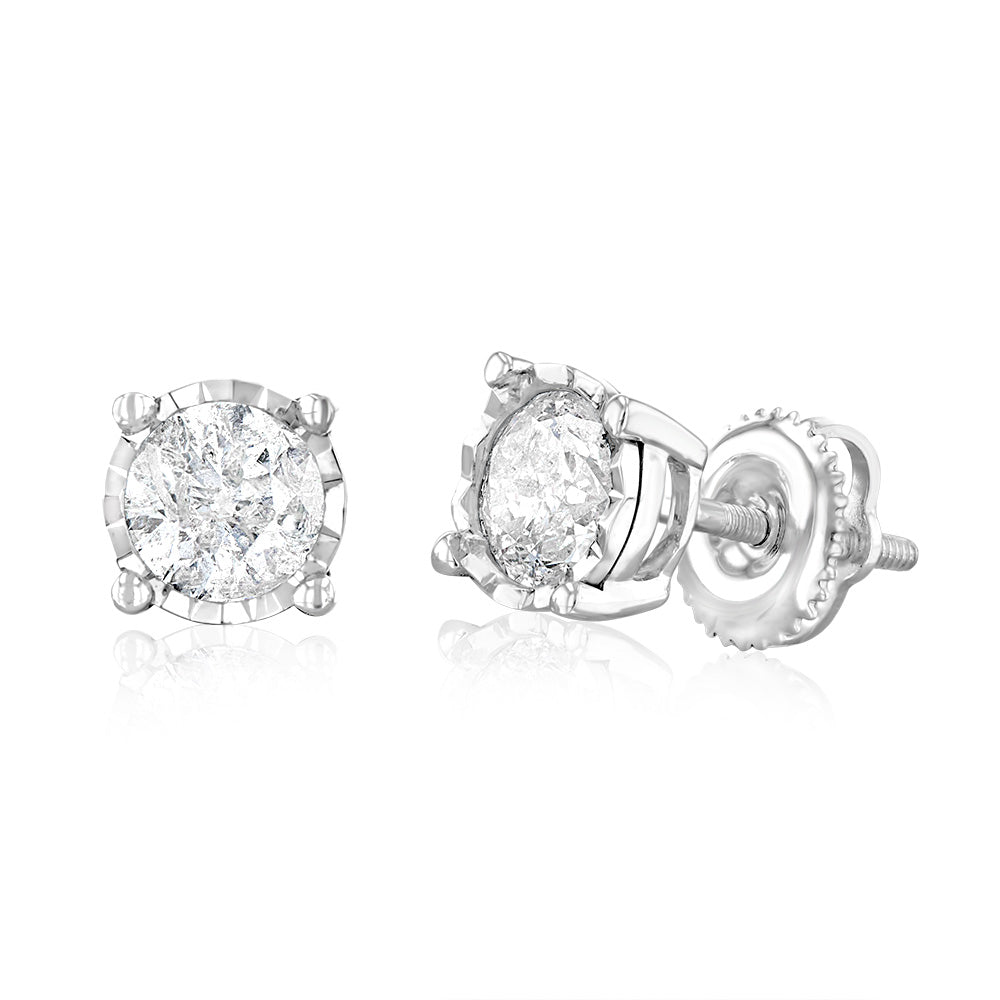 10ct White Gold 0.95 Carat Diamond Solitaire Stud Earrings