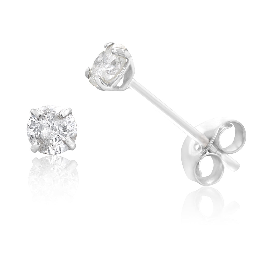10ct White Gold 1/3 Carat Diamond Solitaire 4-Claw Stud Earrings