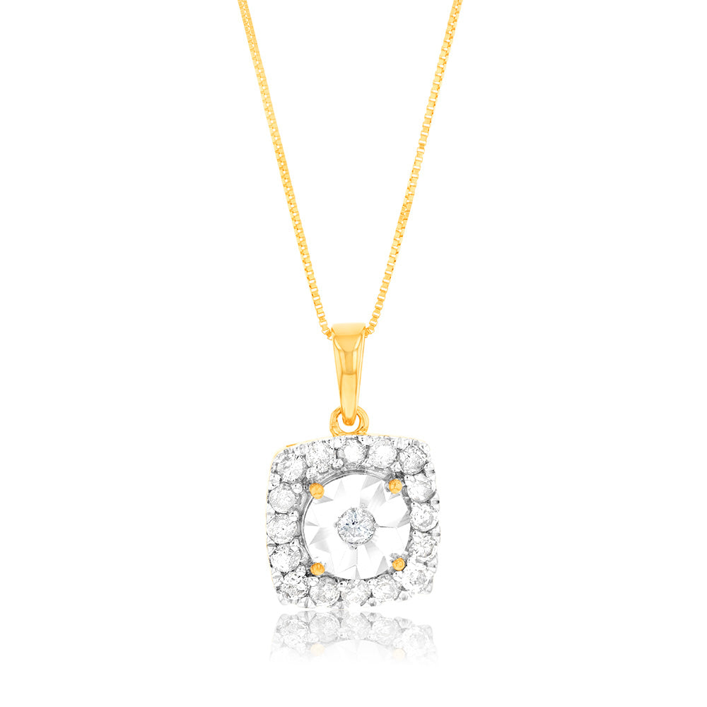 10ct Yellow Gold 1/3 Carat with 17 Brilliant Diamonds Square Pendant