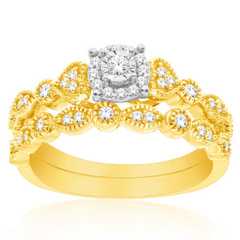 10ct Yellow Gold 1/4 Carat Diamond Bridal Set
