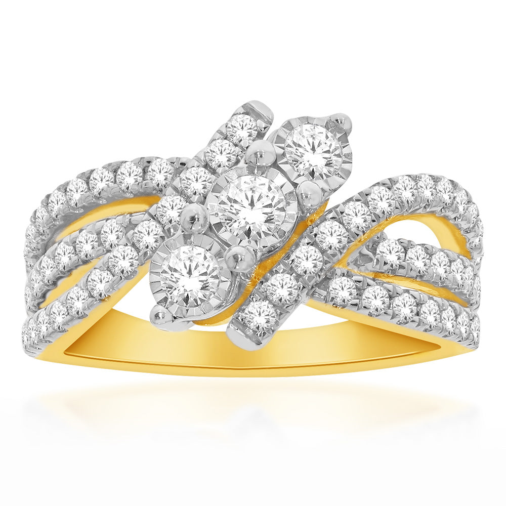 10ct Yellow Gold 1 Carat Diamond Trilogy Ring