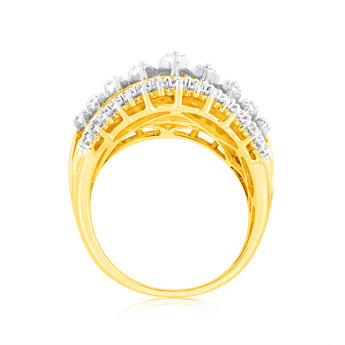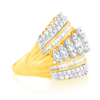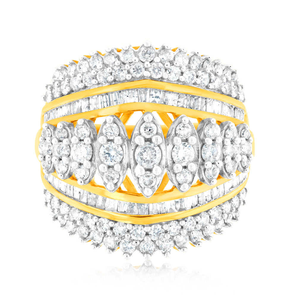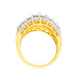 10ct Yellow Gold 2 Carat Diamond Ring with Taper and Round Brilliant Cut Diamonds