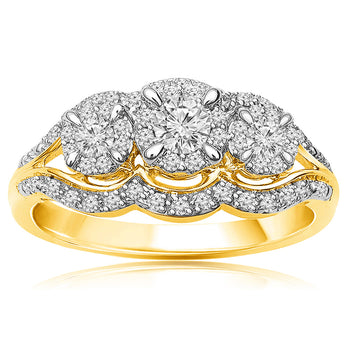 10ct Yellow Gold Diamond 1/2 Carat Trilogy Ring