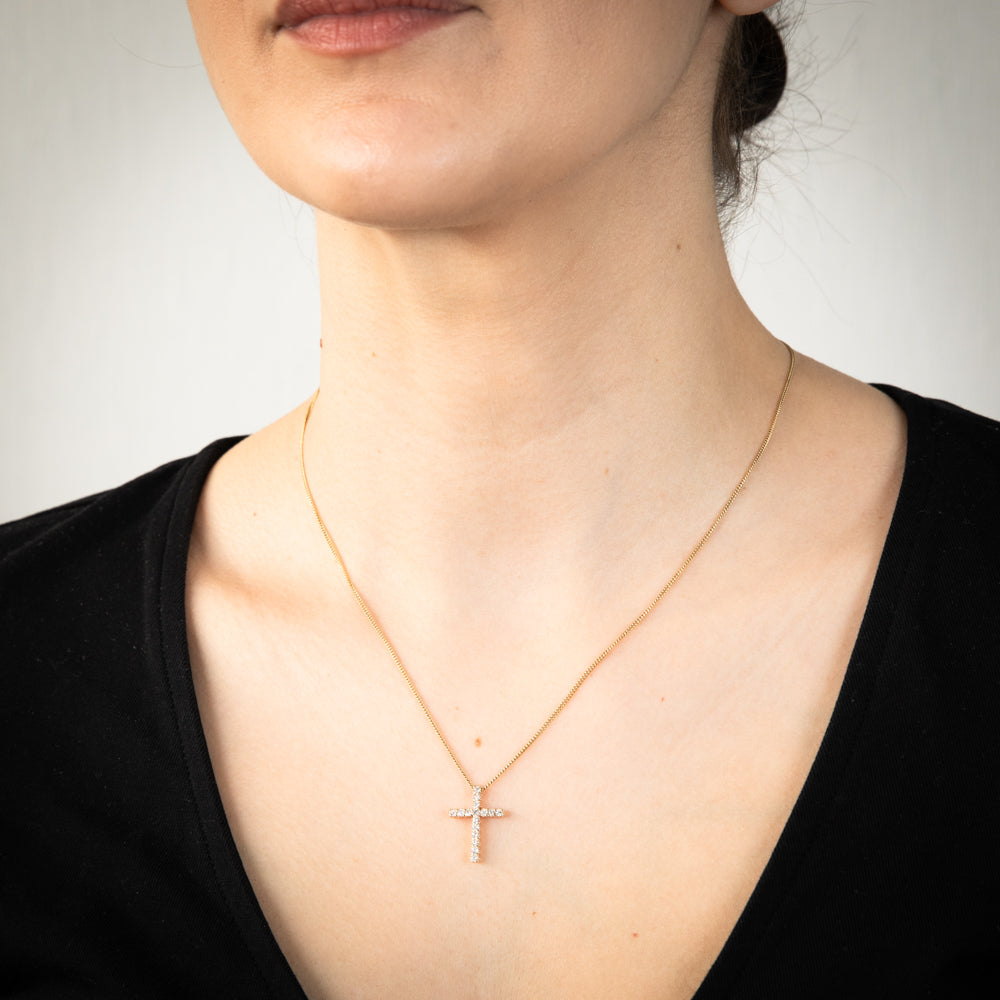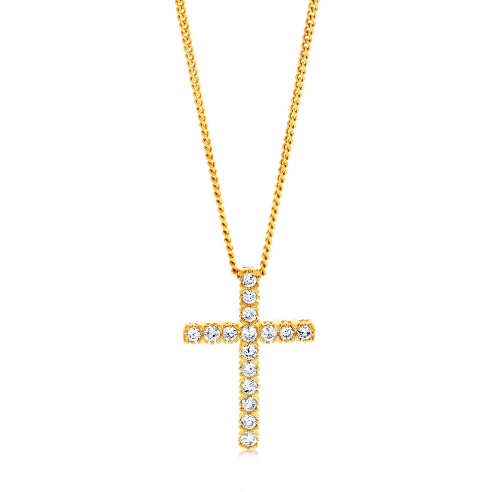 10ct Yellow Gold Diamond Cross Pendant Set with Brilliant Diamonds