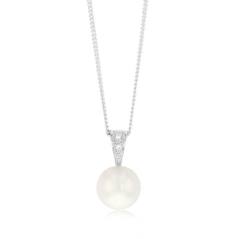 11-12mm White South Sea Pearl and Diamond Pendant on 45cm Chain in Sterling Silver