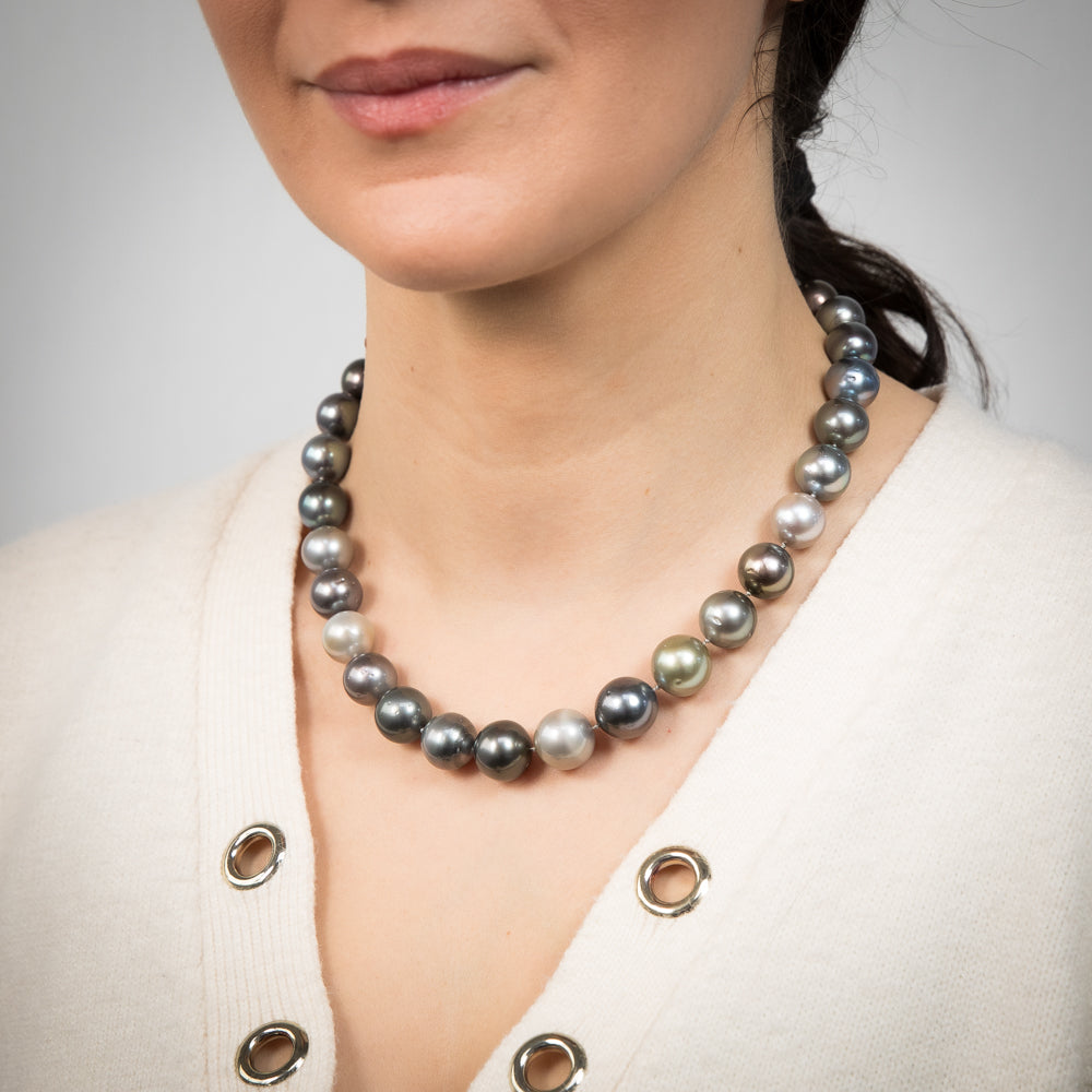 12-14.2mm Tahitian Pearl Multicolour Strand with 14ct White Gold Stardust Ball Clasp