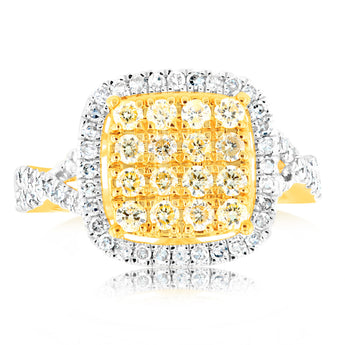 14ct 1 Carat Diamond Ring Cushion Shape with 84 Brilliant Cut Diamond