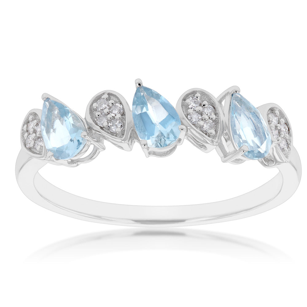 14ct White Gold 0.63ct Aquamarine and Diamond Pearl Fancy Ring