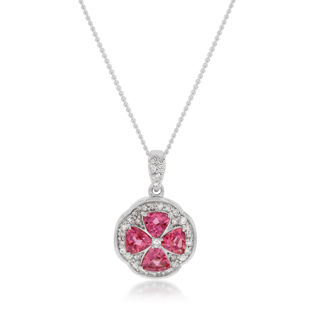 14ct White Gold 0.88ct Pink Tourmaline and Diamond Pendant