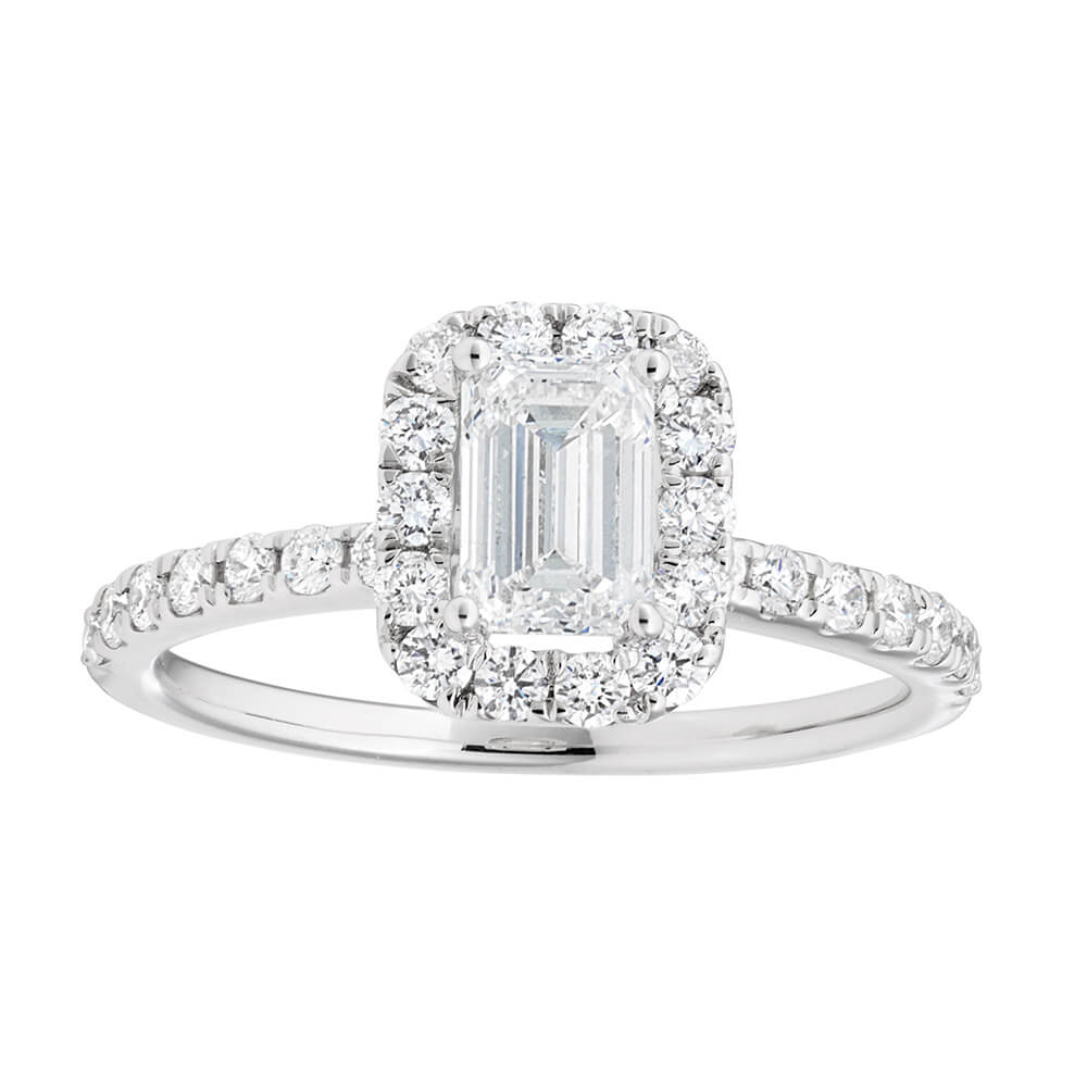 14ct White Gold 1.20 Carat Diamond Ring with 3/4 Carat Emerald Centre Diamond