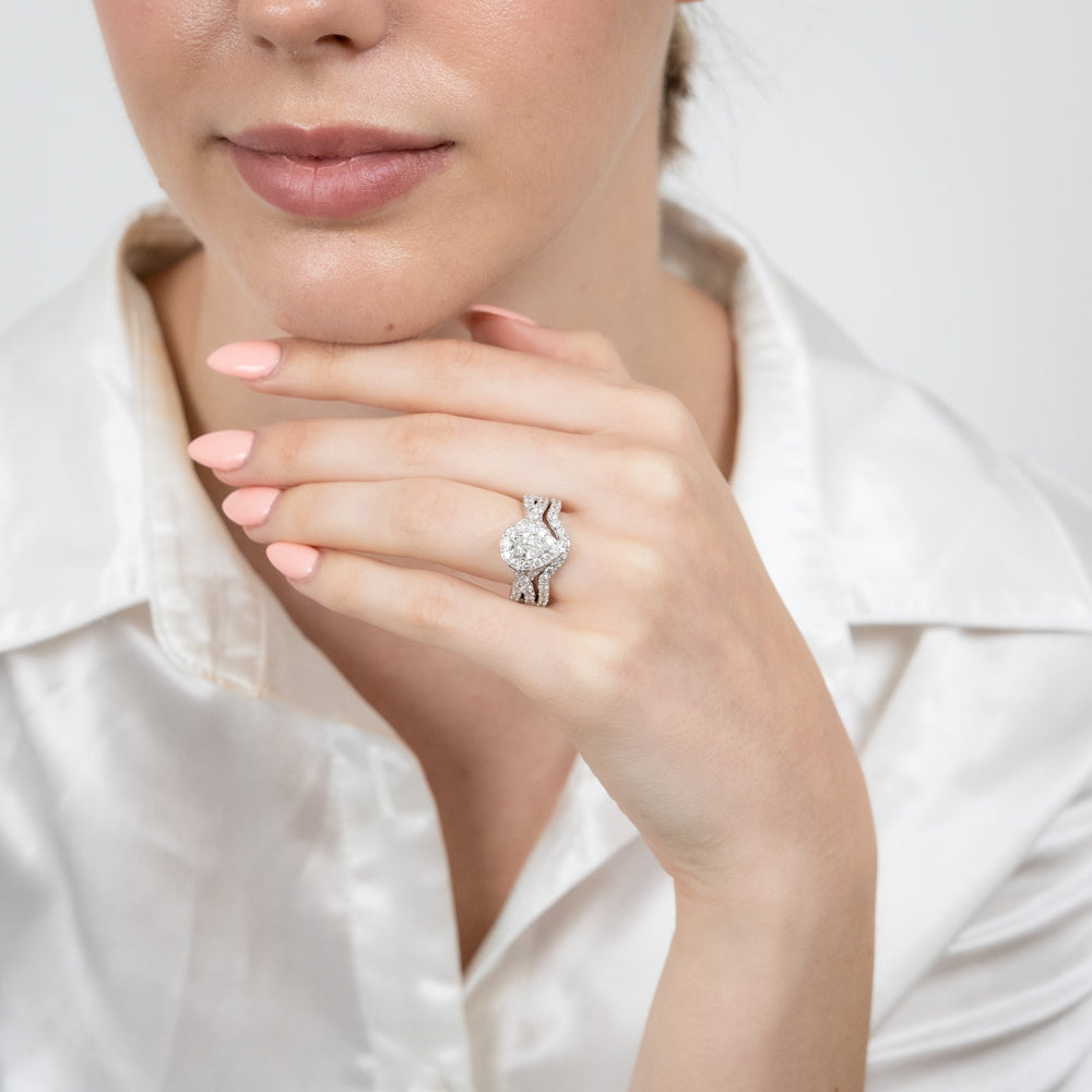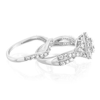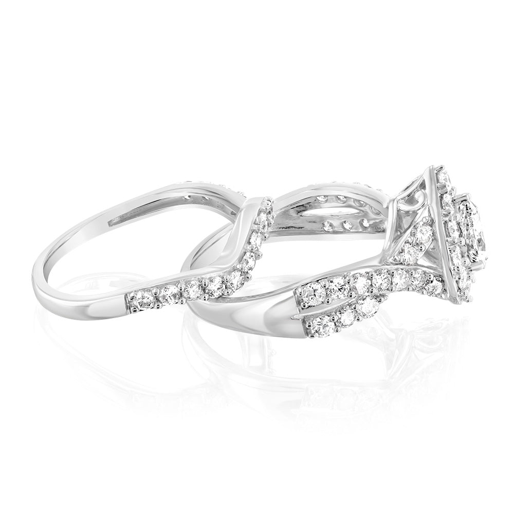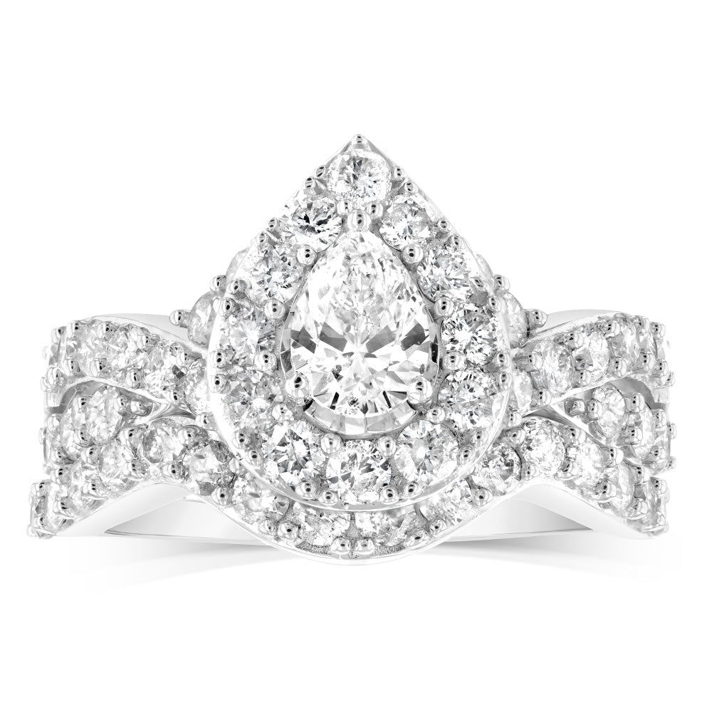 14ct White Gold 1.95 Carat Diamond Bridal 2 Ring set with Pear Centre Diamond Surrounded by Brilliant Cut Diamond Halo