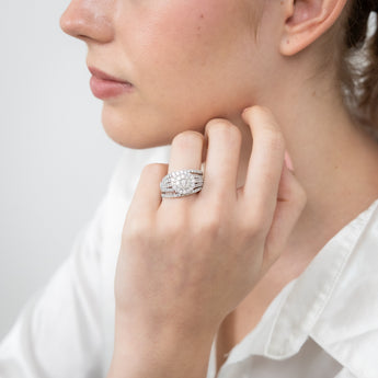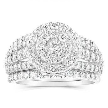 14ct White Gold 1.95 Carat Diamond Halo Bridal 3 Ring set with Brilliant Cut Diamonds