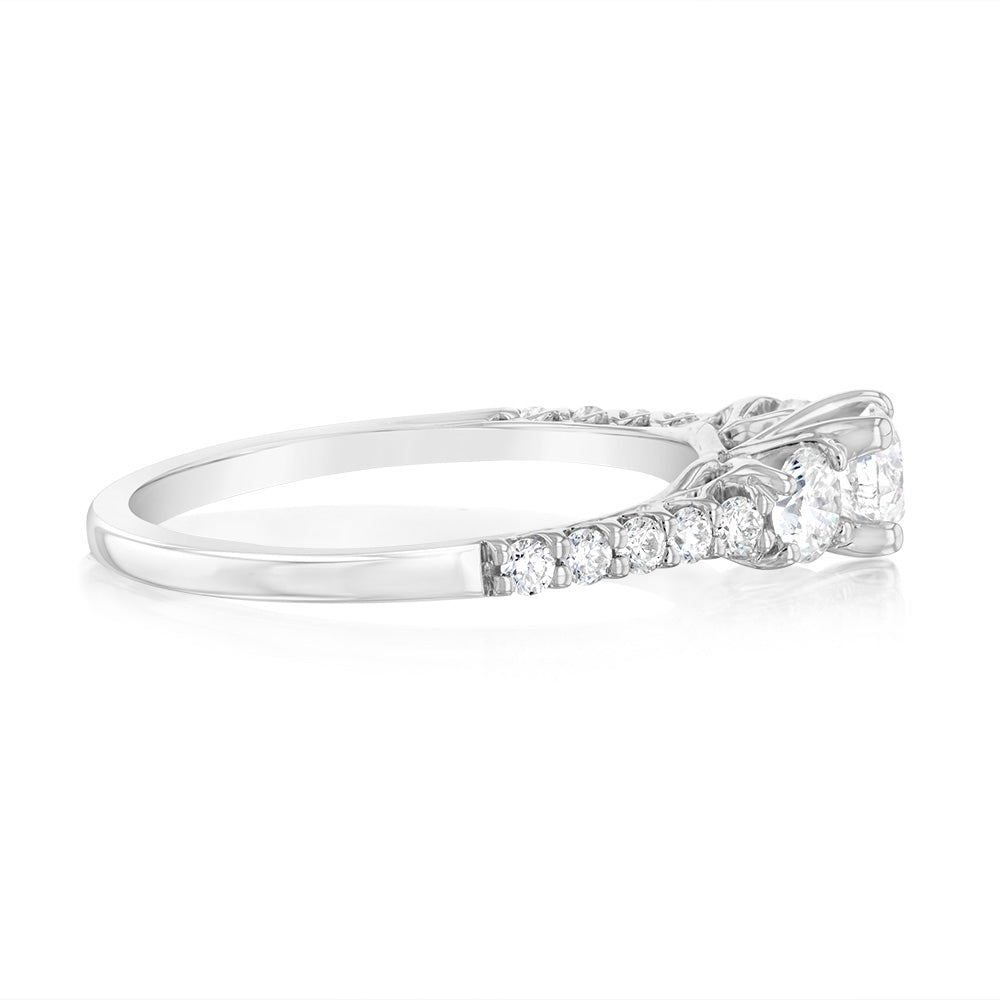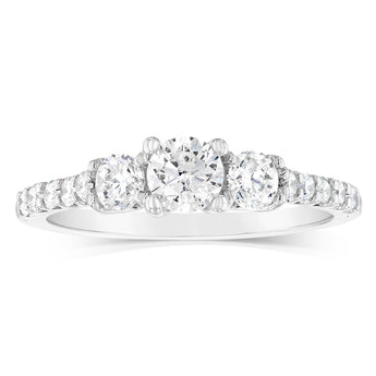 14ct White Gold 1 Carat Brilliant Cut Diamond Trilogy Ring with Diamond on Shank