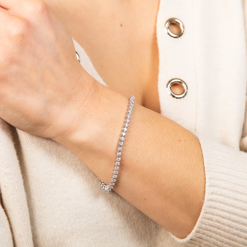 14ct White Gold 2 Carats Diamond Tennis Bracelet With 51 Brilliant Diamonds 18cm