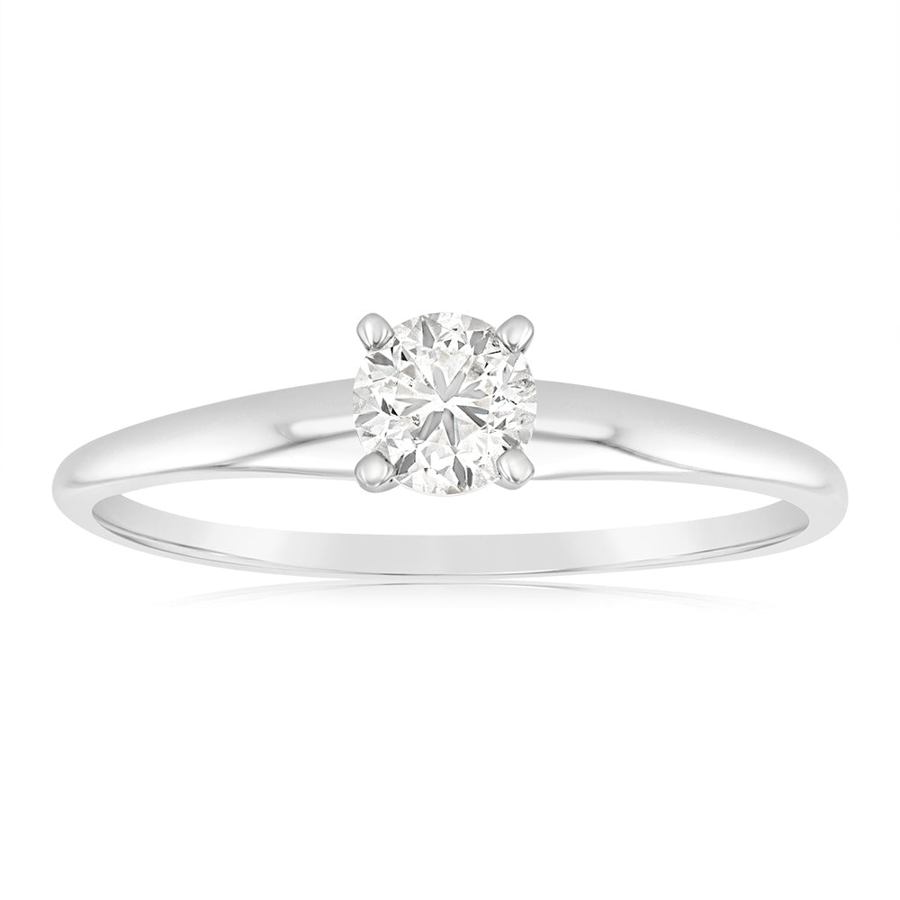 14ct White Gold Solitaire Ring With 50 Point Brilliant Cut Diamond
