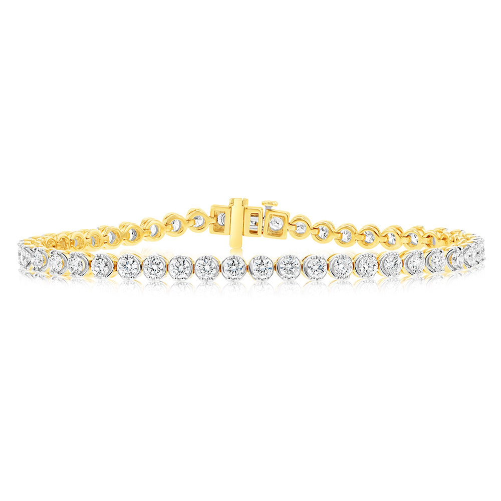 14ct Yellow Gold 3.80Carats Diamond Tennis Bracelet With 46 Brilliant Diamonds 17.5cm