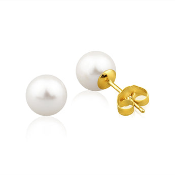 14ct Yellow Gold 7mm White Freshwater Pearl Stud Earrings
