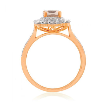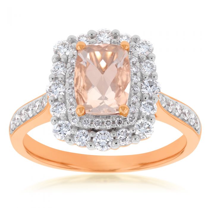 18ct Rose Gold 1.25 Carat Morganite and Diamond Double Halo Ring