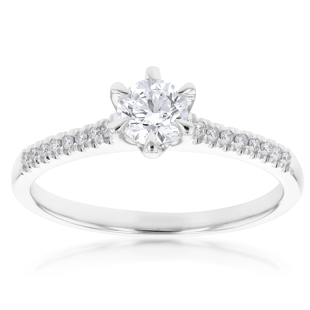 18ct White Gold 0.60 Carat Solitaire with 1/2 Carat Certified Centre Diamond