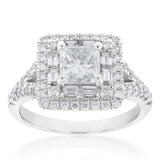 18ct White Gold 1.80 Carat Diamond Ring with 1.00 Carat Certified Princess Centre