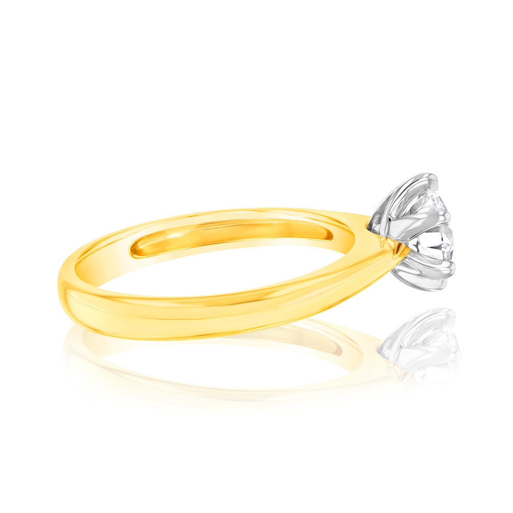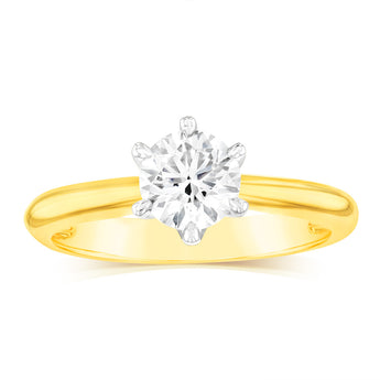18ct Yellow Gold 0.80 Carat Diamond Solitaire Ring with 6 Claw Knife Edge Setting