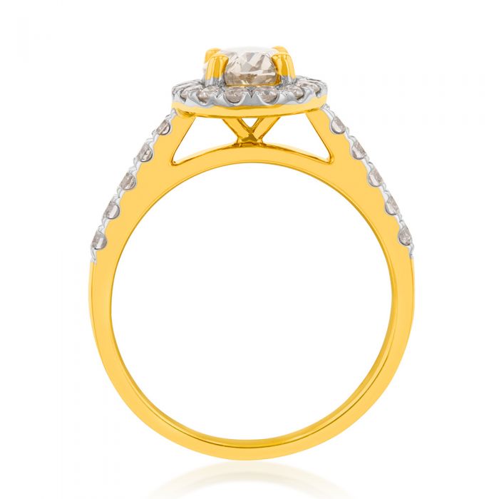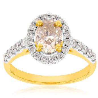 18ct Yellow Gold 1.50 Carat Diamond Ring With 1 Carat Oval Australian Diamond
