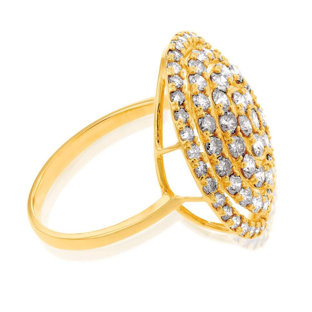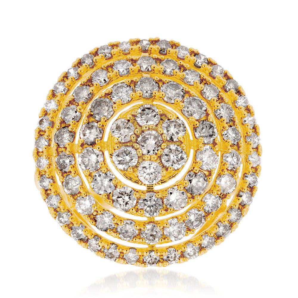 18ct Yellow Gold 2 Carat Diamond Round Shape Cluster Ring