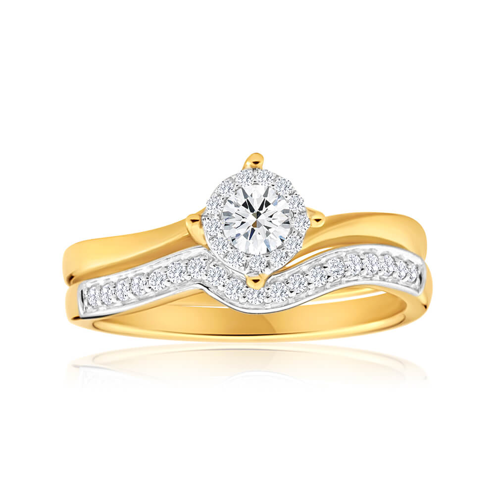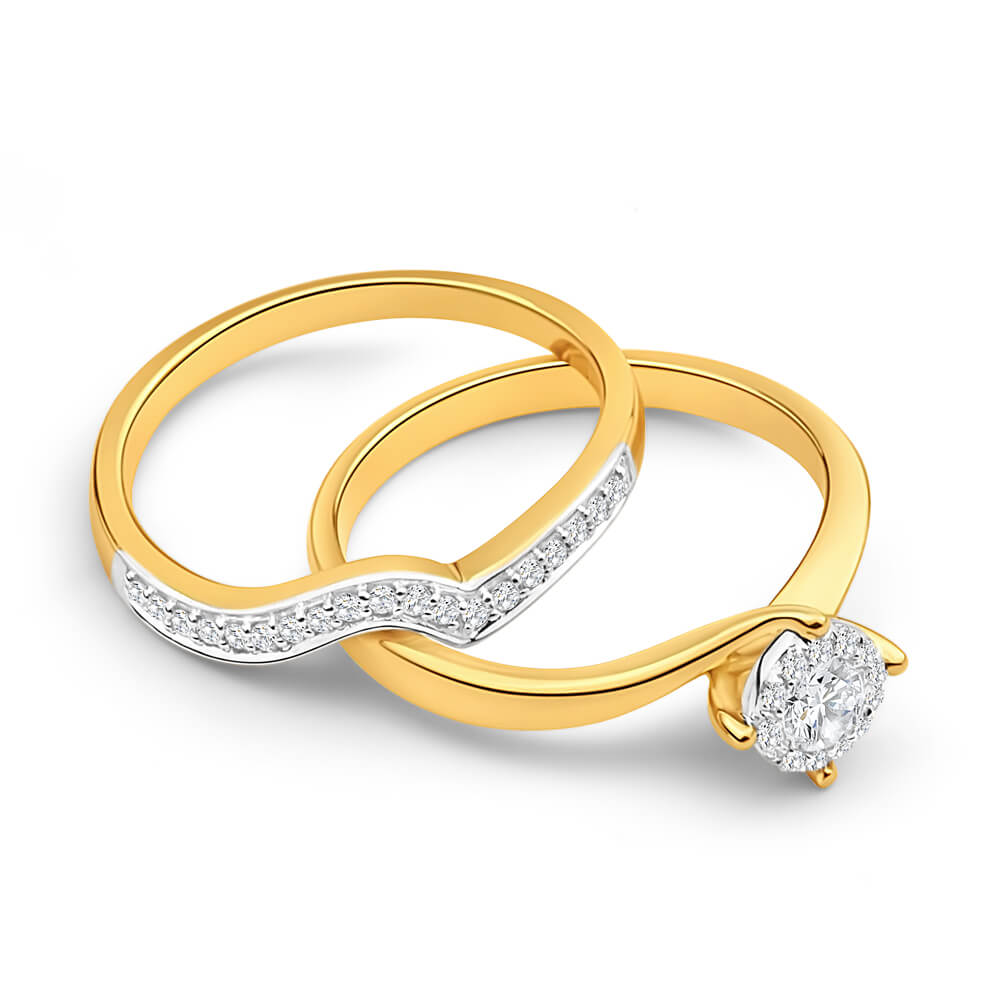 18ct Yellow Gold 2 Ring Bridal Set With 0.25 Carats Of Diamonds