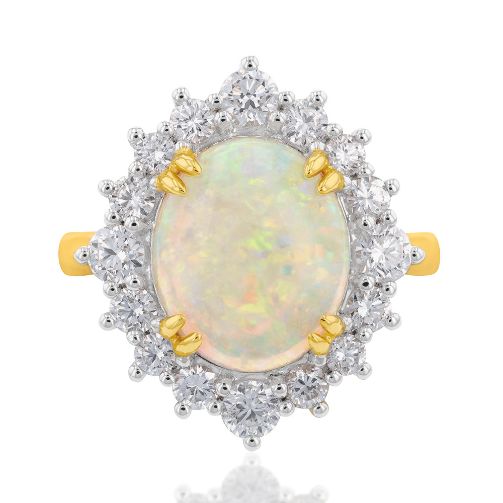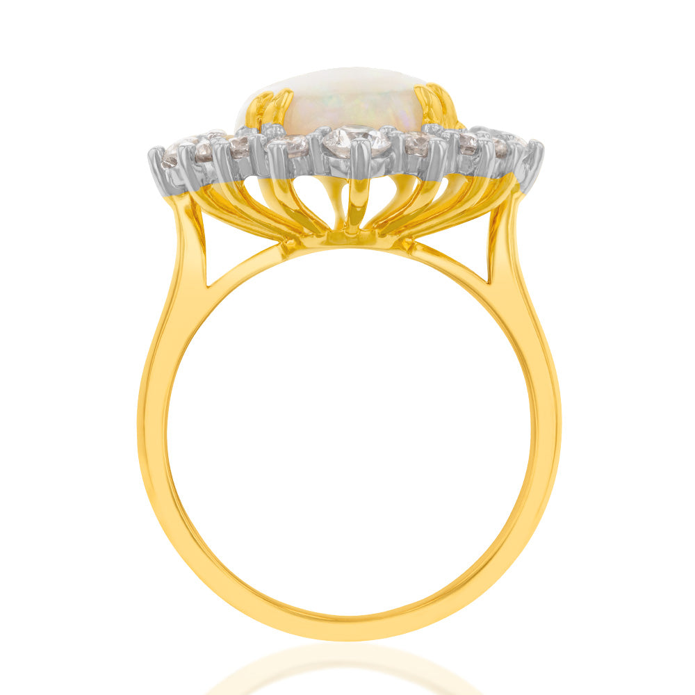 18ct Yellow Gold 3.17ct Natural White Oval Opand and 1.30ct Diamond Ring