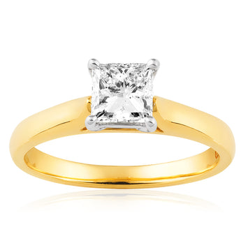 18ct Yellow Gold & White Gold Solitaire Ring With 1 Carat Princess Diamond