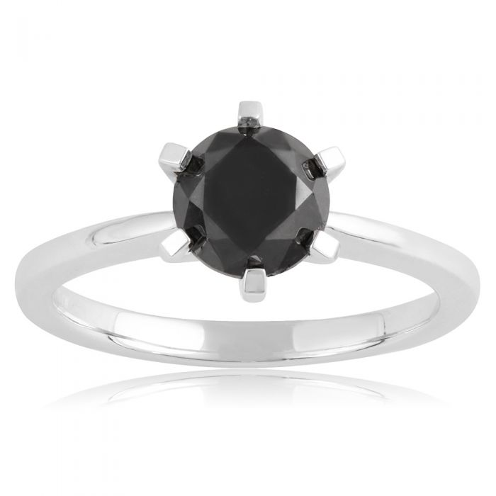 2 Carat Black Diamond Solitaire Ring in Sterling Silver