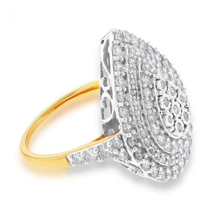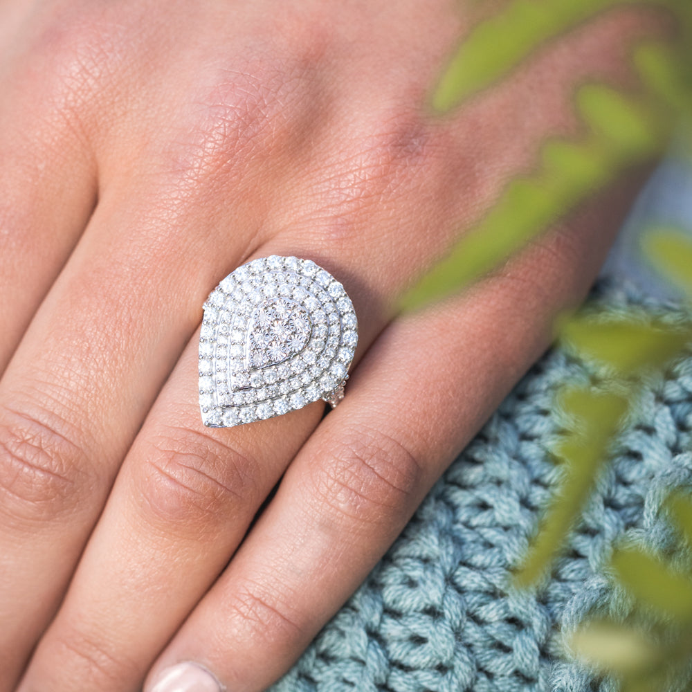 2 Carat Diamond Pear Shaped Cluster Ring Set in Sterling Silver and 9ct Yellow Gold