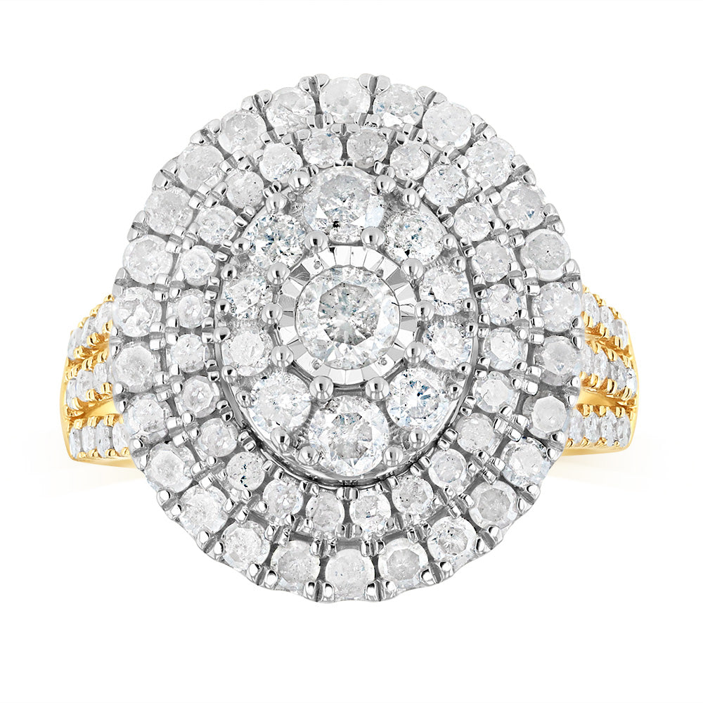 2 Carat Natural Diamond Oval Shaped Ring in 9ct Yellow Gold and Sterling Silver