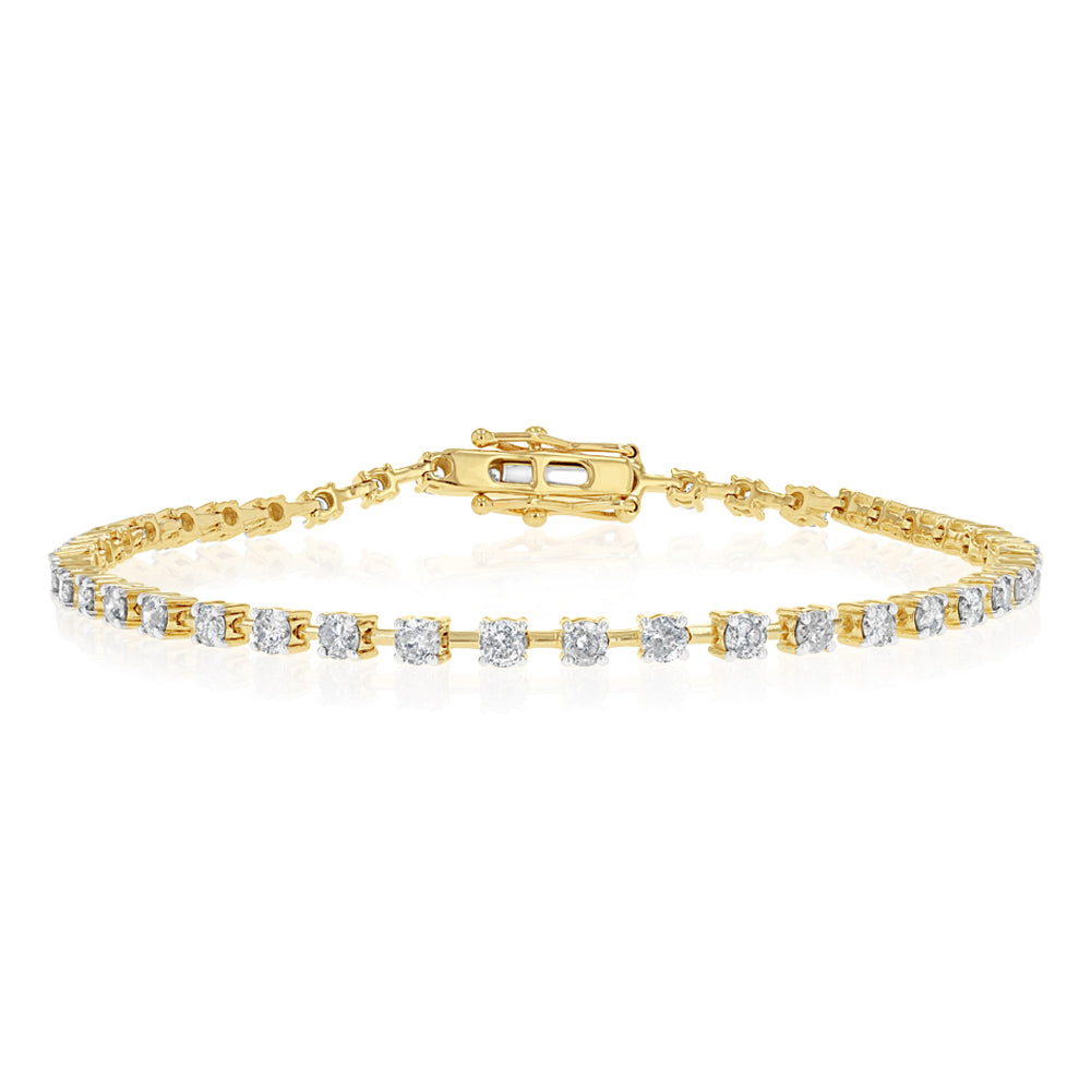 2 Carats Diamond Tennis Bracelet 17.5 cm in 9ct Yellow Gold
