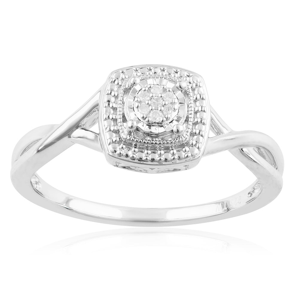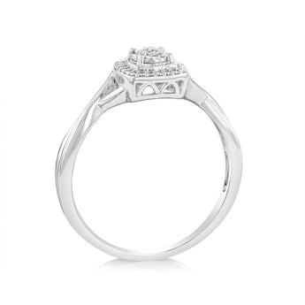 2 Points Diamond Ring with 7 Brilliant Cut Diamonds in Sterling Silver