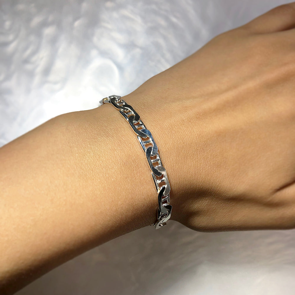 21cm Sterling Silver Anchor 150 Gauge Bracelet
