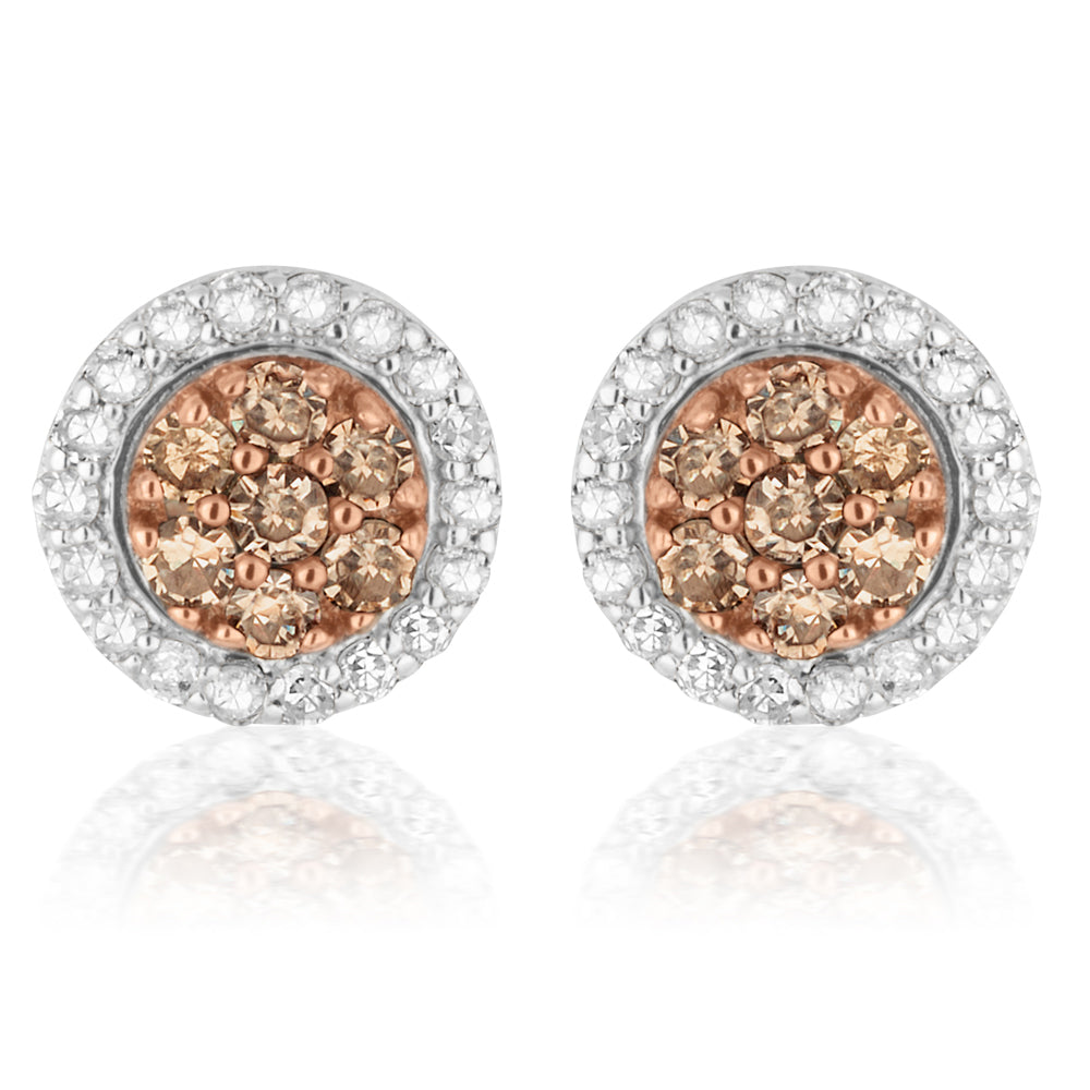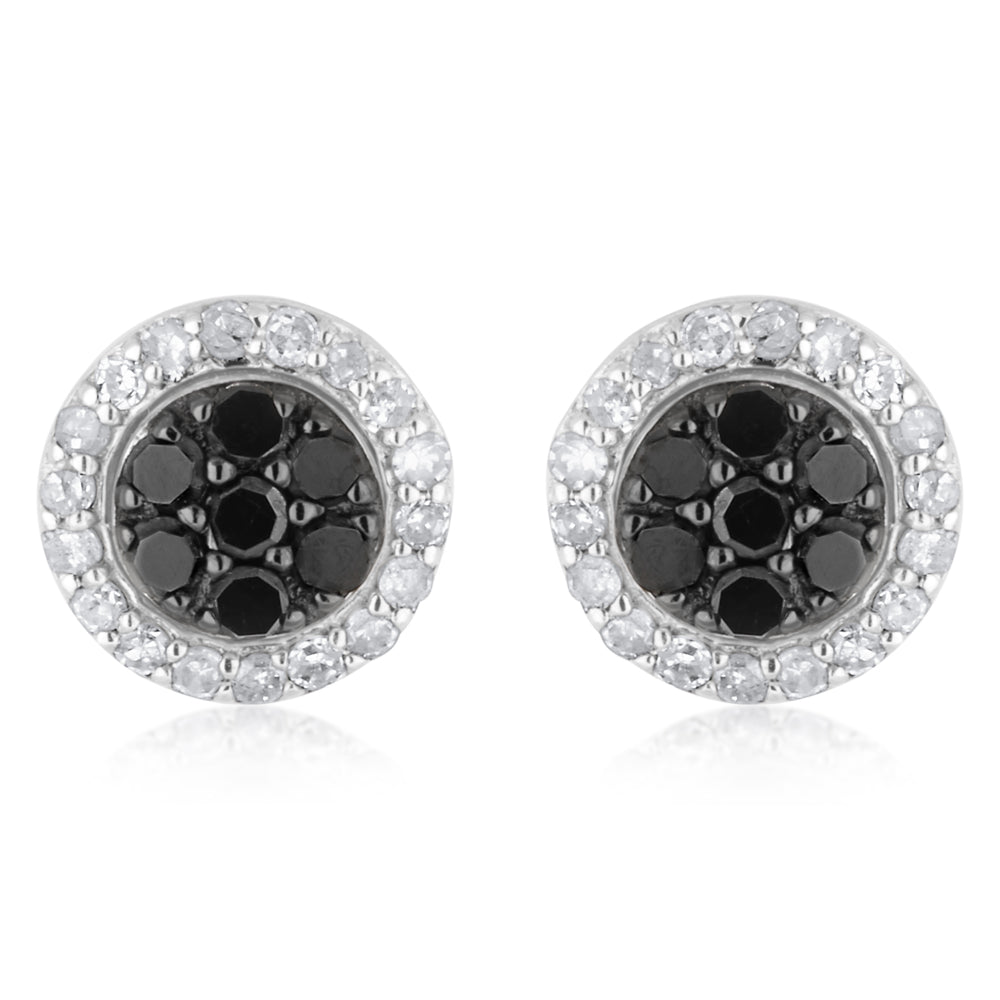 3/4 Carat Champagne. Black & White Diamond Earring Set with Removable Halo