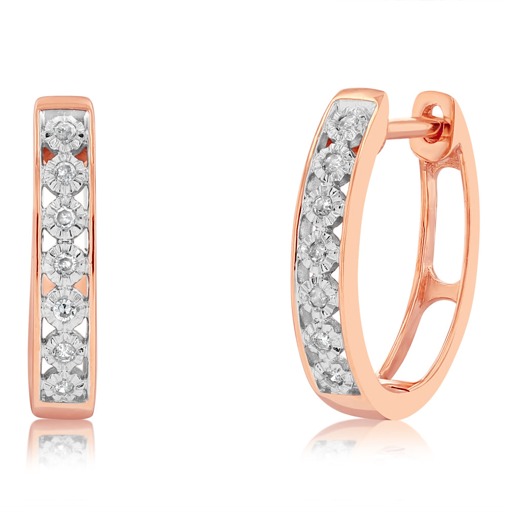 5 Points Diamond Hoop Earrings in 9ct Rose Gold