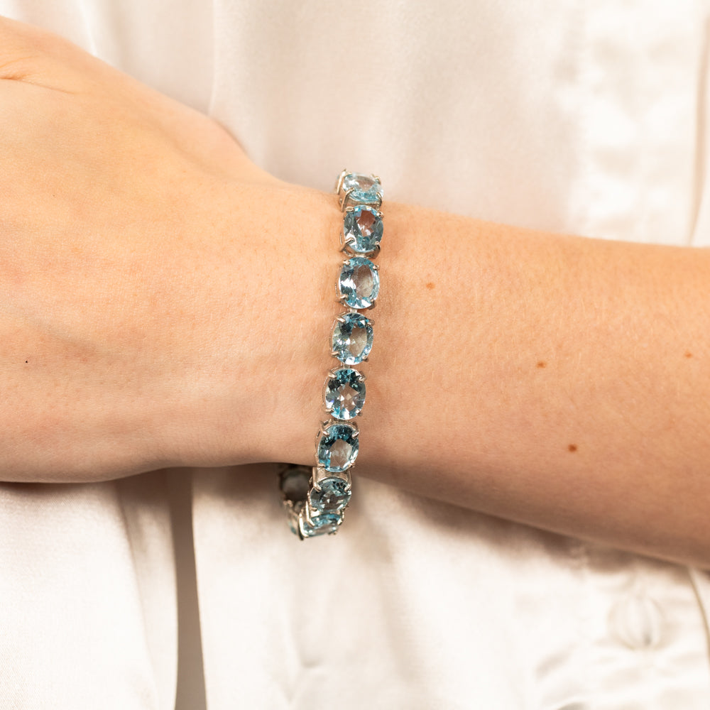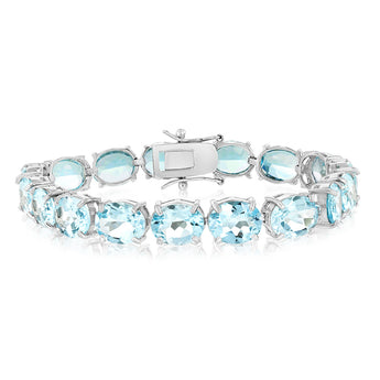 50 Carat Blue Topaz Tennis 18cm Bracelet Set in Sterling Silver