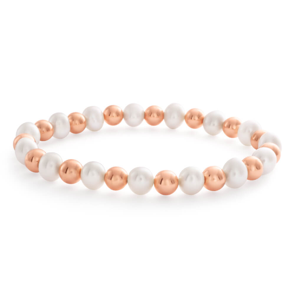 6.5mm Mixed Colour Freshwater Pearl 17.5cm Bracelet with Rose Tone Hematite Beads