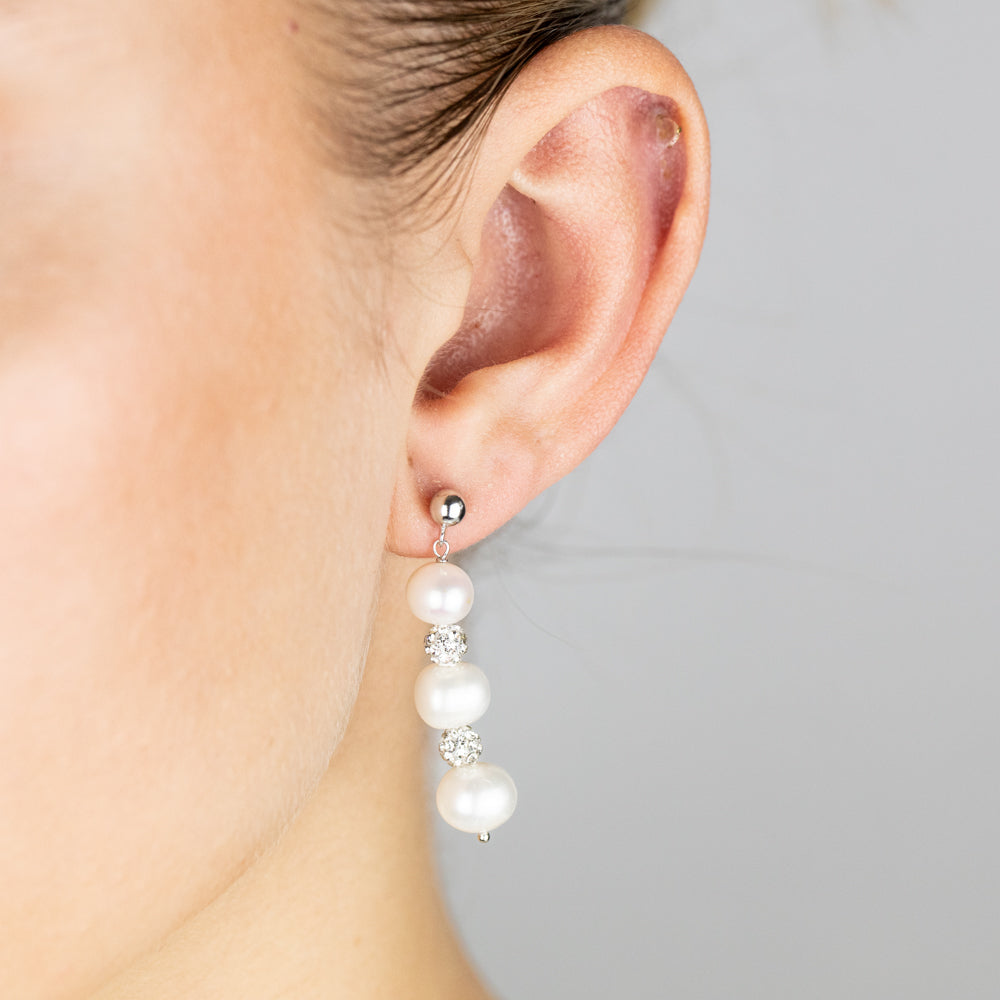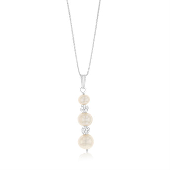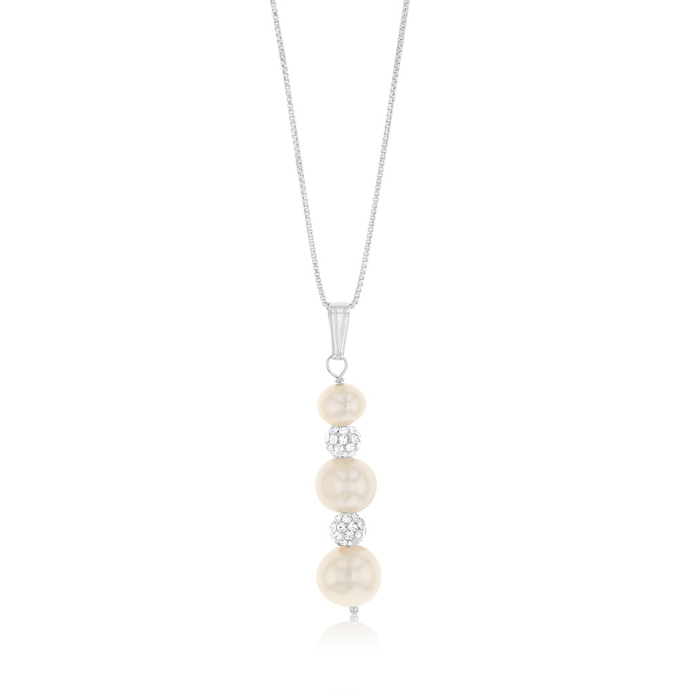 6-9MM Fresh Water Black Pearl Crystal Bead Earring & Pendant Set in Sterling Silver
