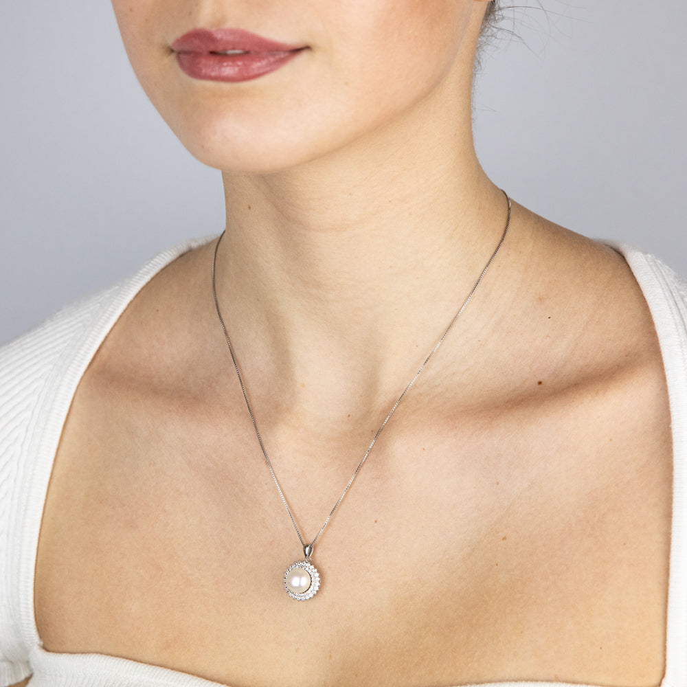 7-10mm Fresh Water Pearl Pendant & Earring Set in Sterling Silver