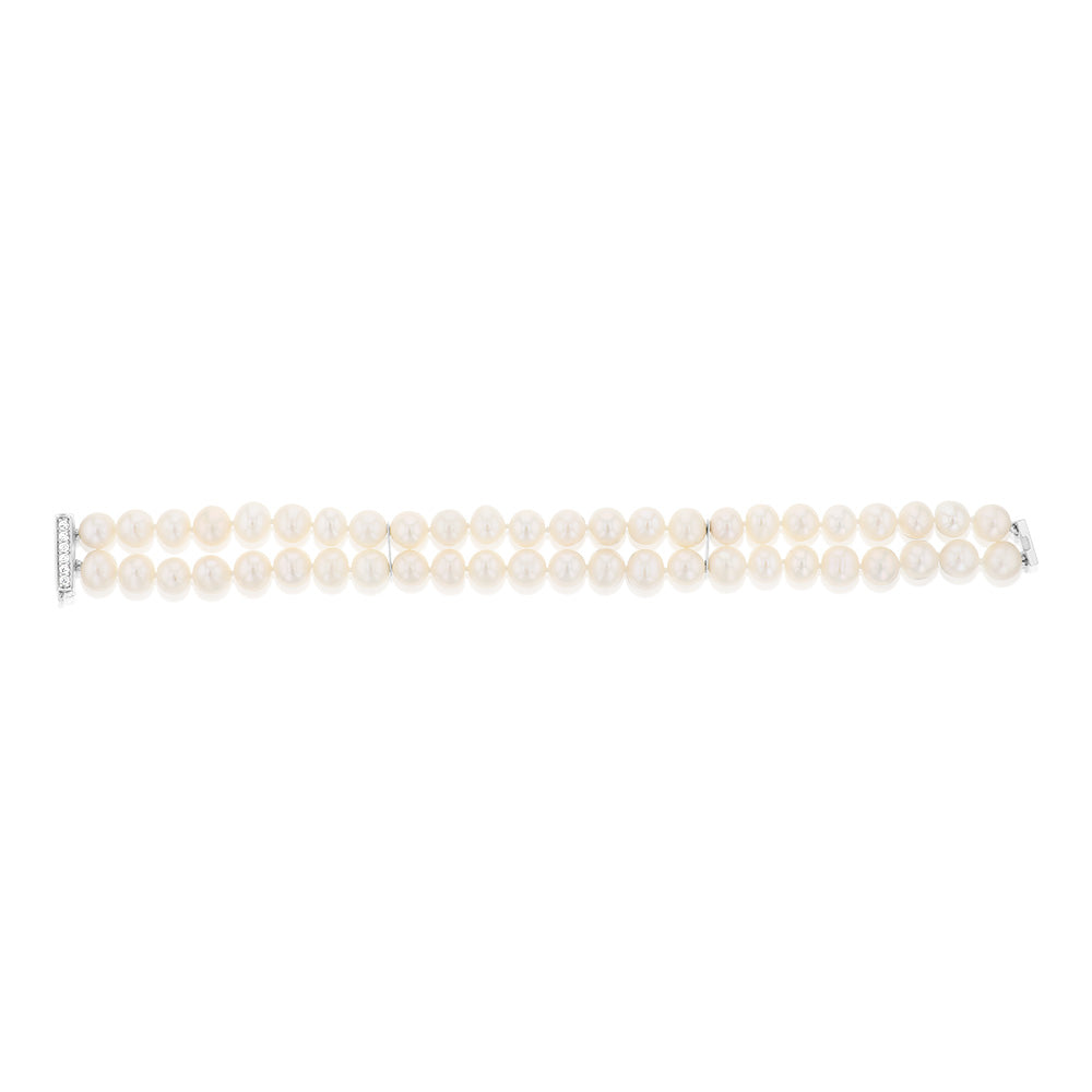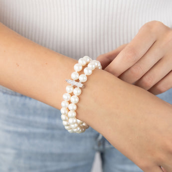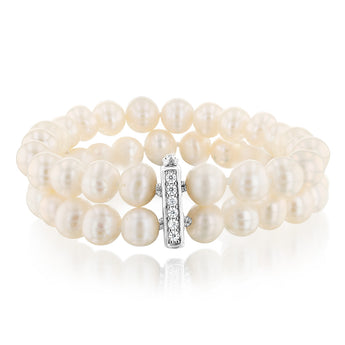 7-8mm Fresh Water Pearl & Cubic Zirconia Bracelet in Sterling Silver
