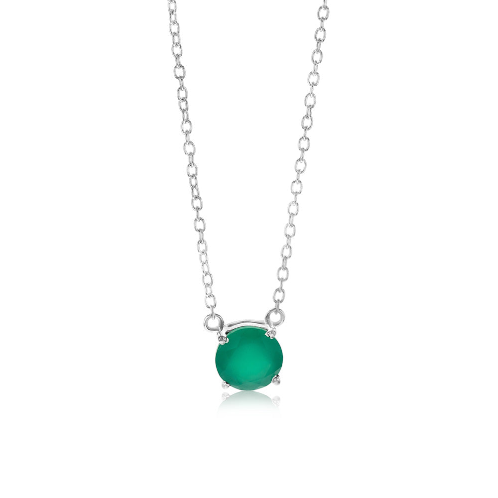7mm Natural Green Onyx Pendant in Sterling Silver with Chain