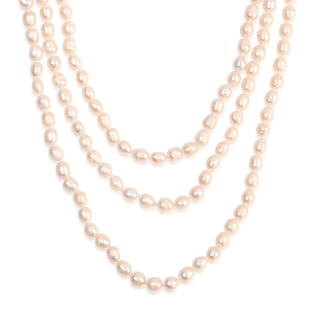 8-9mm White Rice Pearl 162.5cm Long Necklace
