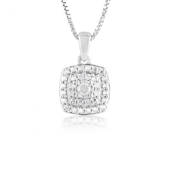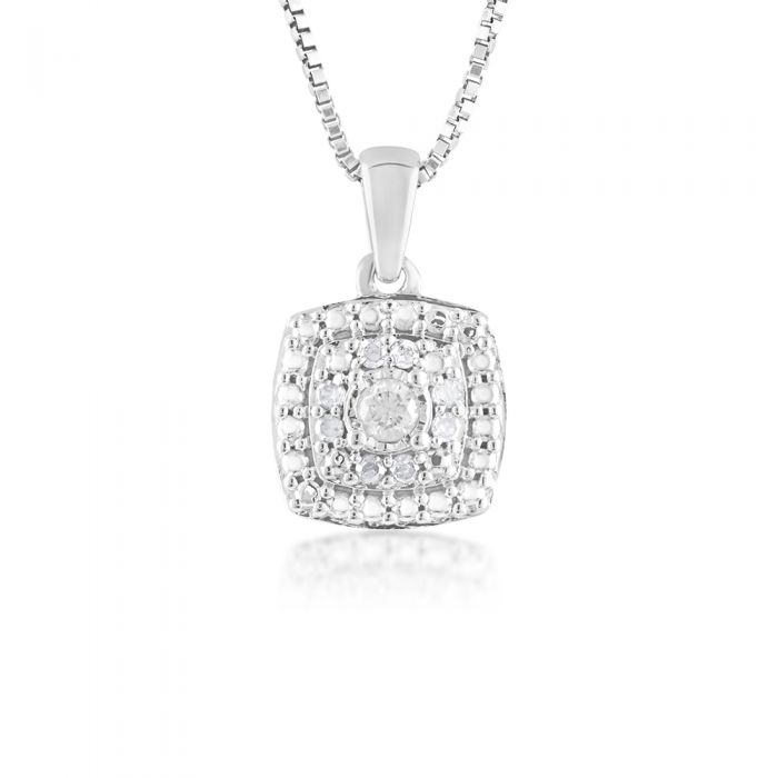 9 Diamonds Pendant in Sterling Silver on 46cm Chain