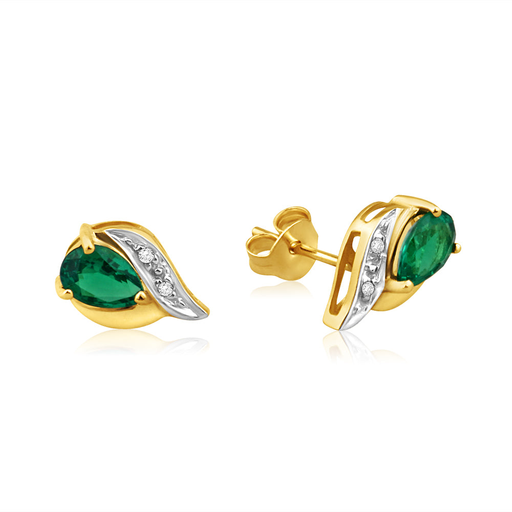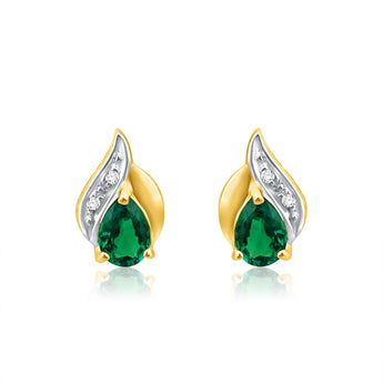 9ct Alluring Yellow Gold Created Emerald + Diamond Stud Earrings