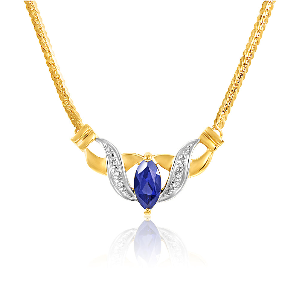 9ct Alluring Yellow Gold Created Sapphire + Diamond Chain